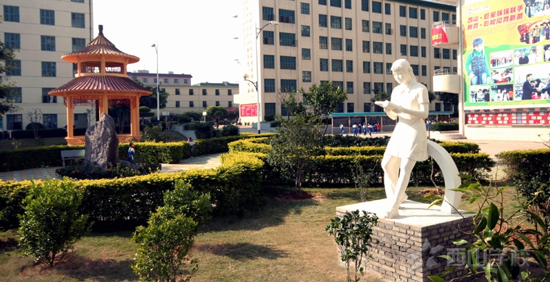 在绿树丛中,矗立着一座座宏伟的建筑,有教学楼,综合楼,餐厅,宿舍,一应齐全。校园的西北角是师生们休息的好去处,有假山,喷泉,长廊,幽静雅致,来到这里让人倍感神清气爽,是学生陶冶情操的好景致;榕树是校园一大美景,这里的榕树郁郁葱葱,像一把把绿色的巨伞,为孩子们遮风挡雨,榕树下成了孩子们的乐园;