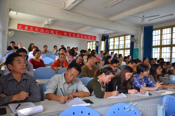 在张总校长的的倡导下,西山学校正在进行快乐课堂教学改革,为了让每个学生在课堂中得到学习,能在学习中加以应用,在应用中能够创新,切实达到“一切为了孩子的发展”的办学宗旨,西山学校小学部响应总校的课堂改革的号召,由小学部副校长高春贵组织安排,于10月23日下午2:30在第一多媒体教室进行了一节四年级英语课改五级示范课——《Happy to learn English》,全校各个学部近80多名老师参加了此次观摩。总校副校长喻勇和课改听课组成员也在观摩席就坐。